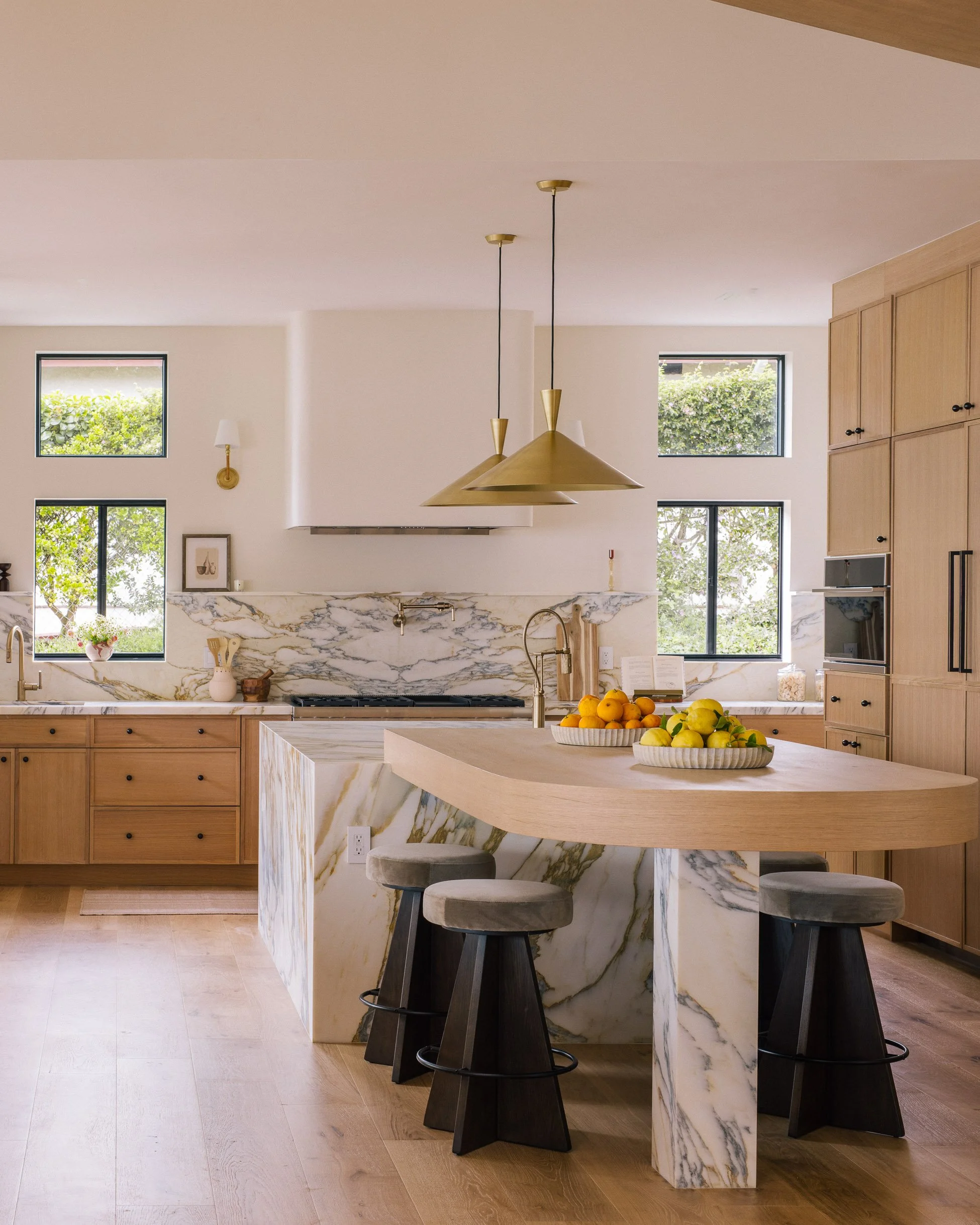 Laurel Grove embraces a transitional California aesthetic, timeless forms layered with natural textures and soft architectural detailing. The palette was built around light, airiness, and subtle contrast, allowing stone, plaster, and warm woods to create depth without visual noise. We guided the client through a detail-forward process that balanced elegance with comfort, shaping spaces that feel open, welcoming, and quietly refined. The result is a home where classic proportions meet modern ease, designed for both gathering and retreat.